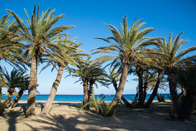 A palm forest unique to Europe and situated only 1 km south of Itanos, in a valley that ends in a breathtaking sandy beach. Every year the beach of Vai is awarded with the "Blue Flag" confirming that it is one of the most well organised and clean beaches of Greece. It offers a variety of water sports, restaurants, cafes etc.