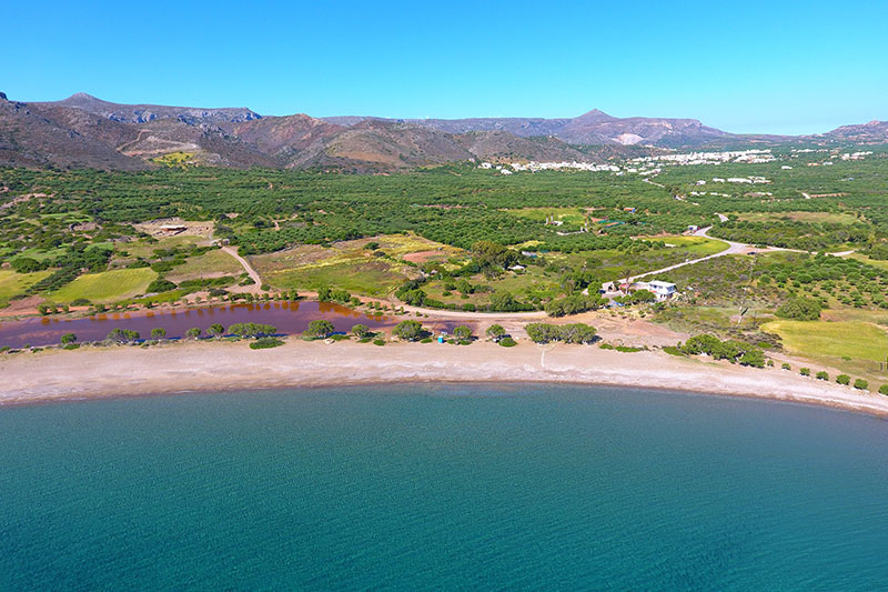 A small scenic beach with a restaurant. Here you may relax and admire the sea view.